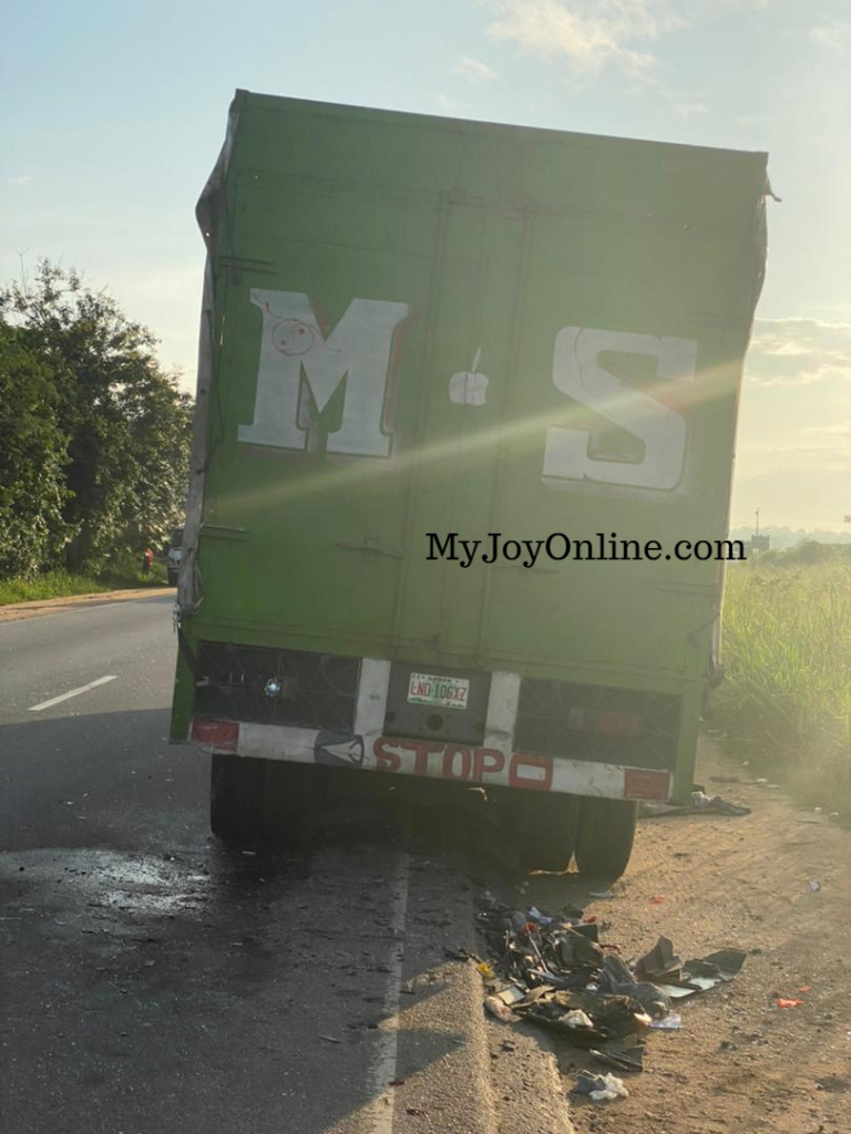 The accident, which occurred near Gomoa Mampong on the Kasoa Winneba Highway in the Central Region on Tuesday, involved an Ivory Coast Cargo truck with the registration number LND 106 X-Z and Kia pick-up GR 3934-Z.
