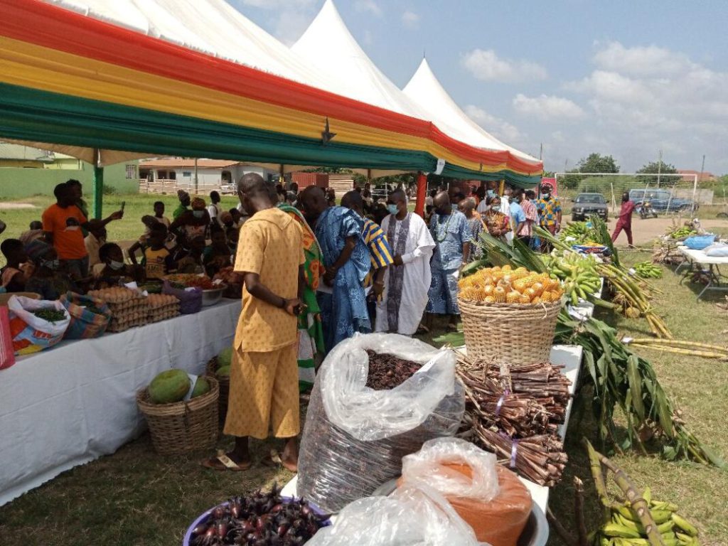 There was an exhibition of agricultural products such as cassava, tomatoes, onion, egg, pepper, sweet potato, watermelon, banana, plantain palm nut, fresh maize and dried, sugarcane, coconut, rabbit, fish and many more.