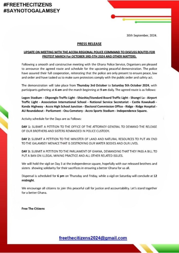 The event, organized under the slogans "FreeTheCitizens" and "SayNoToGalamsey," also seeks to denounce illegal mining, known locally as galamsey, which has been a long-standing environmental and social issue in Ghana.