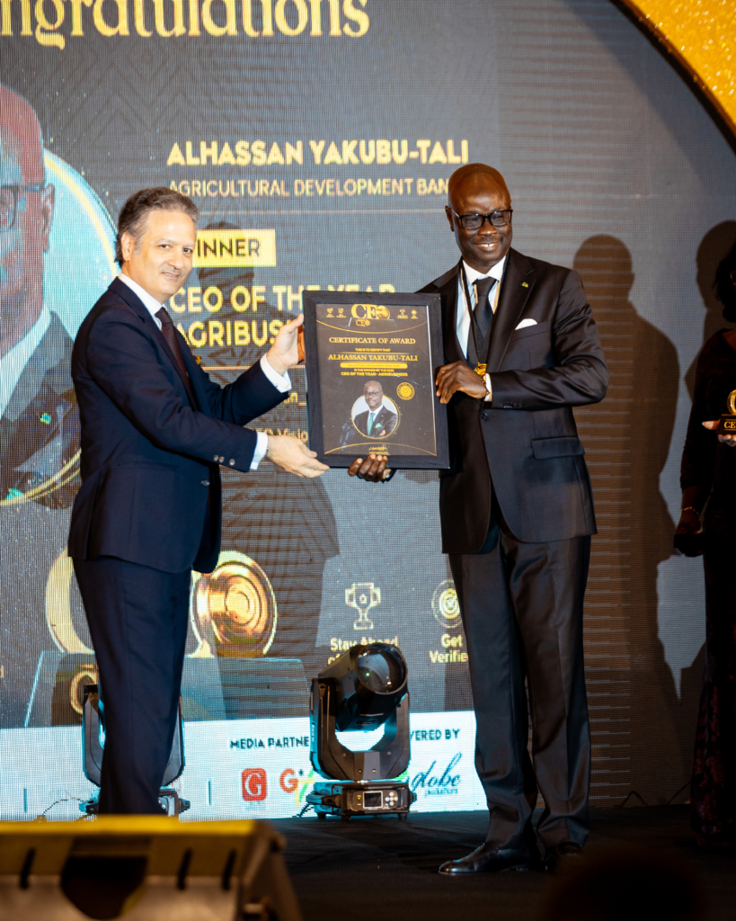 The Managing Director of the Agricultural Development Bank (ADB) PLC, Alhaji Alhassan Yakubu-Tali, has been adjudged the CEO of the year for agribusiness financing at the Ghana CEOs Awards held at Kempinski Hotel in Accra.