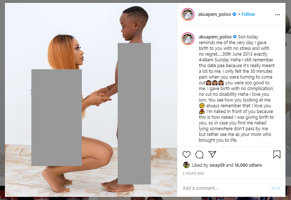 "I was not completely naked. He did not see my organs because I covered myself with a cloth and applied sellotapes to the necessary parts. Besides the picture was taken in my own house,” Akuapem Poloo said.