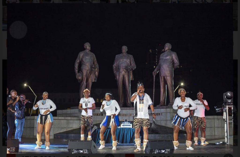 Right beneath the Three Dikgosi Monument, under the bronze sculpture honouring three tribal chiefs: Khama III, Sebele I, and Bathoen I, who played crucial roles in gaining independence for Botswana, the musical group led by Kabelo Mogwe is giving the delegates and audience a musical liberation, churning out hit after hit.