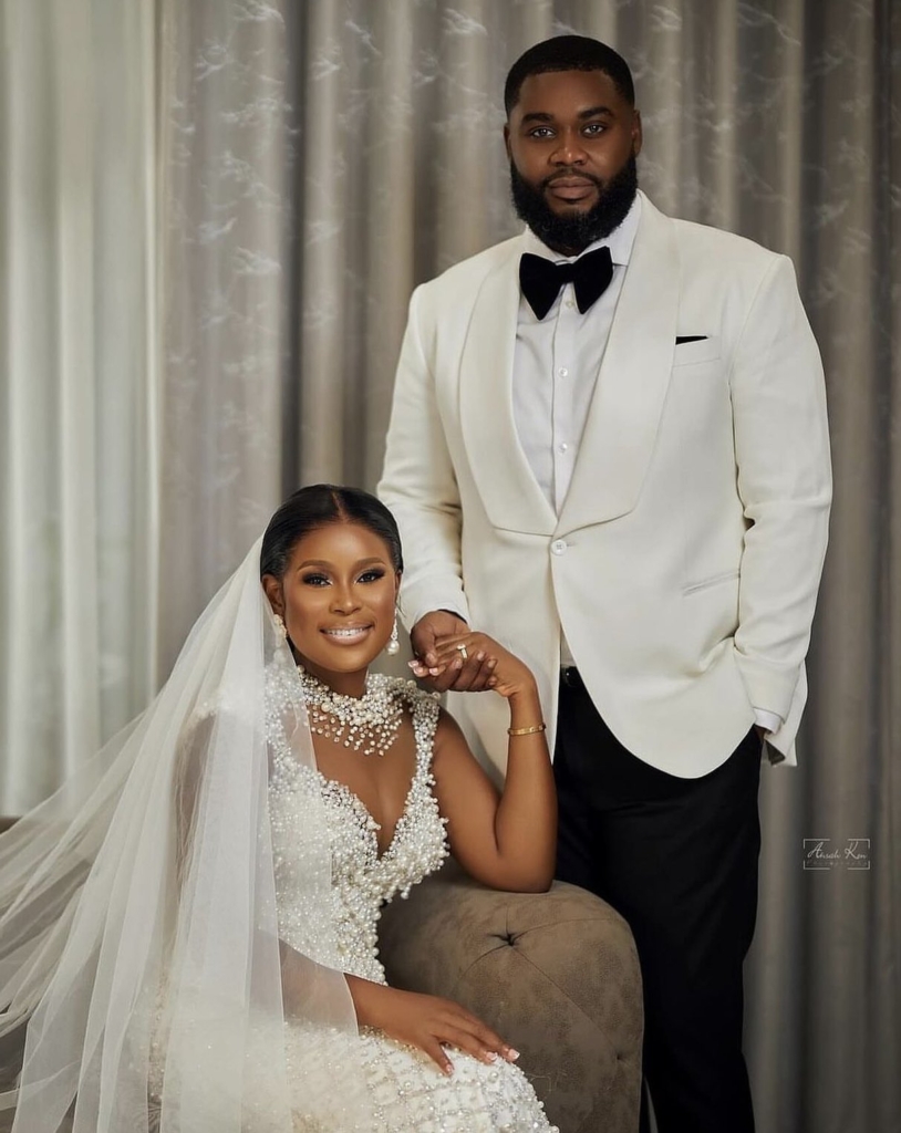 The clip showcased the 'B. You by Berla Mundi' brand ambassador donning an elegant white gown, while her husband, Tabi, looked dapper in a white suit paired with a black bowtie.