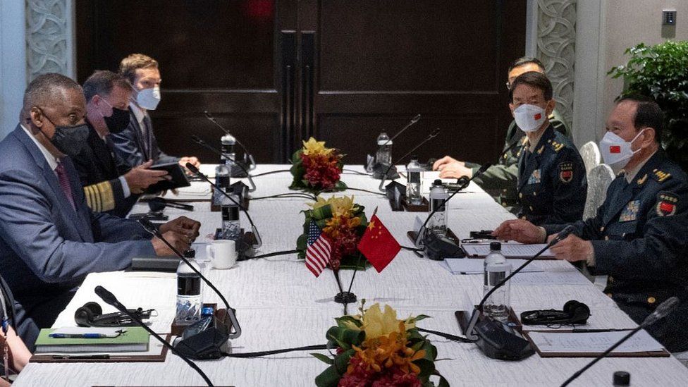 Chinese Defence Minister Wei Fenghe met his US counterpart Lloyd Austin on the sidelines of an Asian security summit in Singapore.
