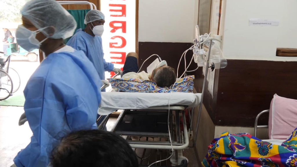 We found an incredibly packed intensive care unit at the Holy Family hospital in New Delhi with every available space taken up with patients.