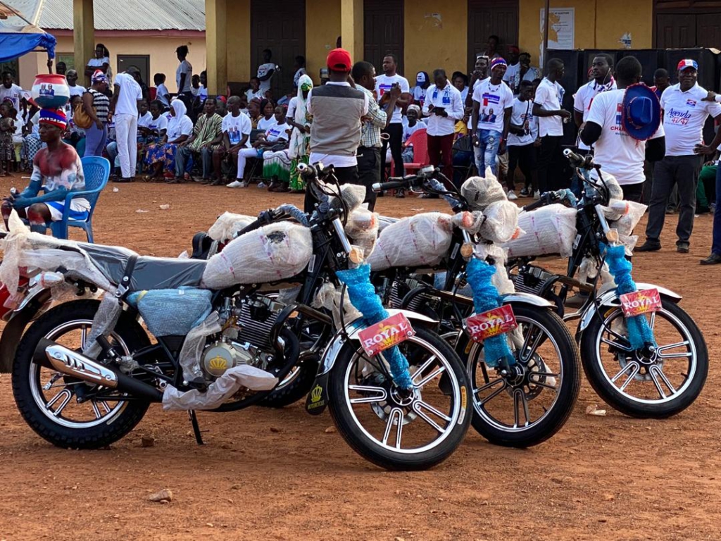 Presidential Advisor on Health, Dr Anthony Nsiah-Asare has supported Ahafo Ano South-East constituency with three motorbikes and ten bales of clothing to strengthen the New Patriotic Party’s campaign activities in the December polls.