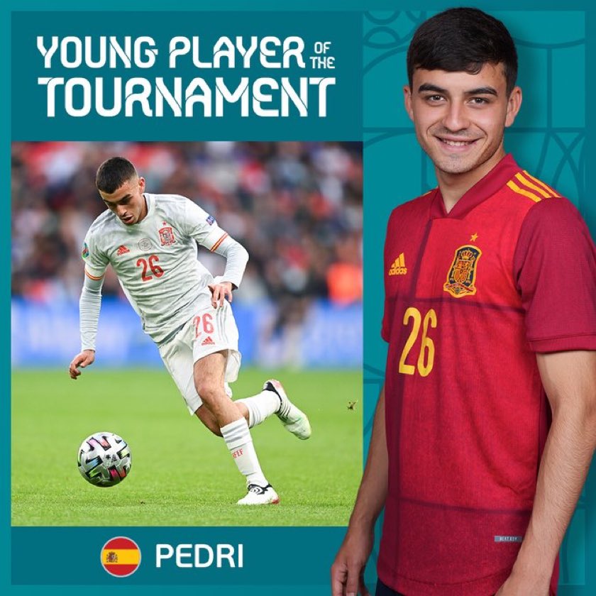 Spain's Barcelona midfielder Pedri was named Young Player of the Tournament.
