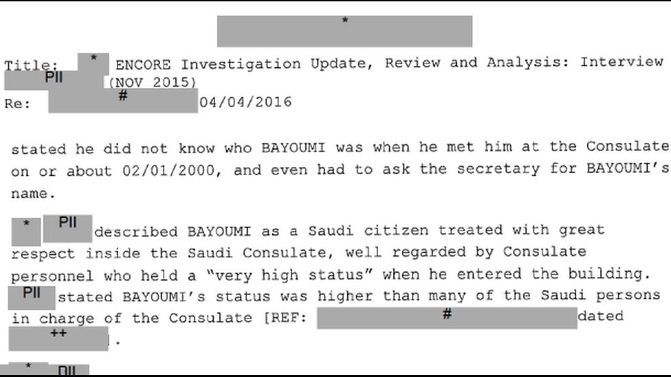 Mr Bayoumi, the source tells the FBI, had "very high status" at the consulate.