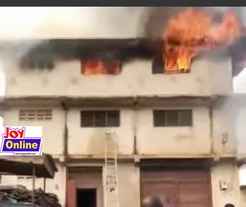 The fire which started at the top floor of a two-storey warehouse consumed vehicle spare parts running into thousands of cedis.