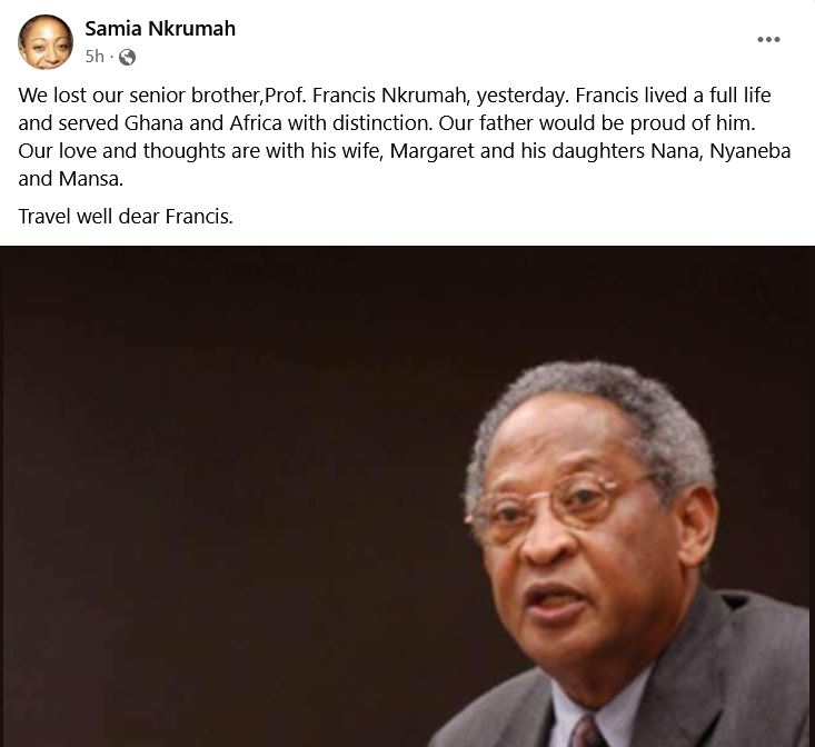 His sister, Samia Yaba Nkrumah made a post about his demise on her Facebook page on Monday, July 1.