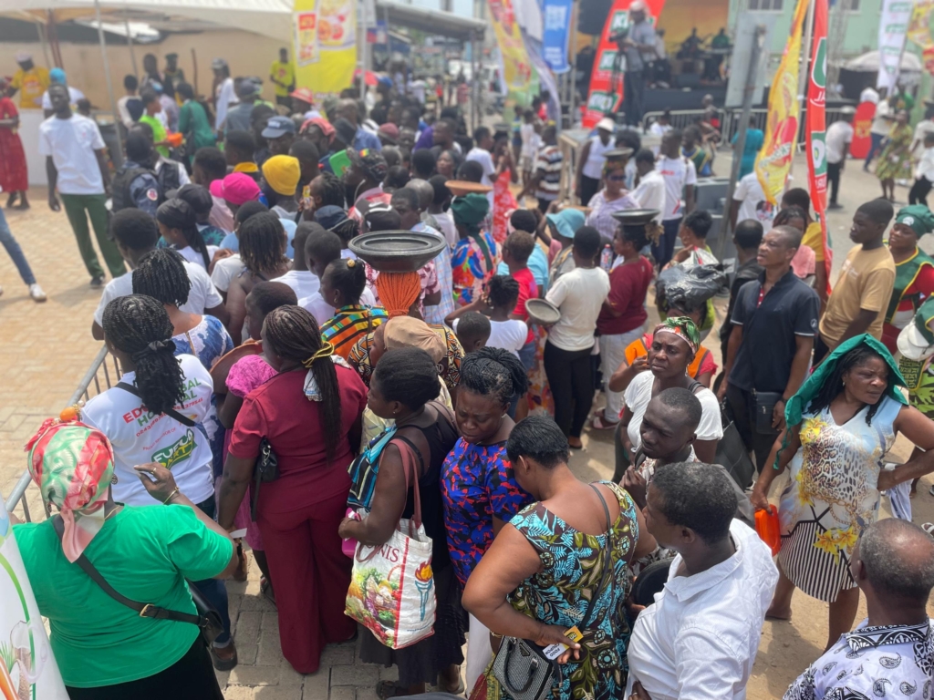 Call them enthusiasts, devotees, or aficionados, hundreds of Ghanaians from all walks of life on Thursday followed their love for the popular local dish, fufuo (fufu) and stormed the precincts of the headquarters of the Multimedia Group Limited at Kokomlemle in Accra, organised by Adom TV.
