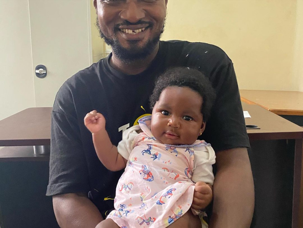 In pictures that have gone viral, Funny Face was seen all smiles holding on to his kids and baby mama.