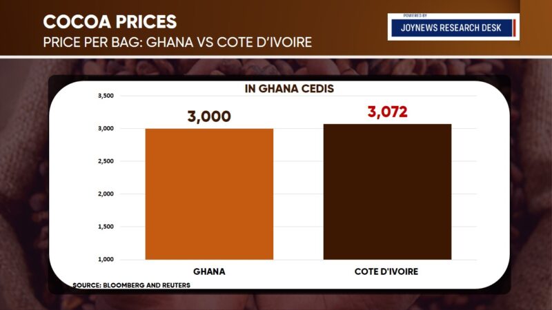 Ghana's lower prices compared to neighbouring countries like Côte d'Ivoire, which charged around GHS 2,560 per bag in 2023/2024 —GH₵ 490 more than Ghana—encouraged smuggling