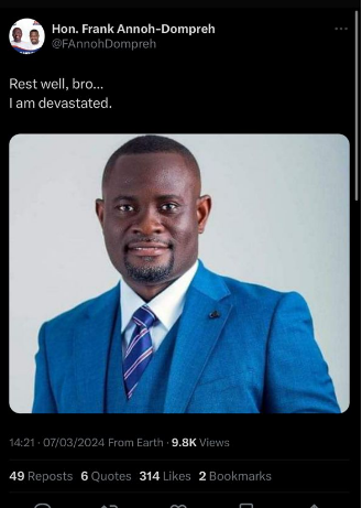 Others who have seen his work as an MP and a Deputy Finance Minister are sad Ghana has lost a young politician while a few are in denial.