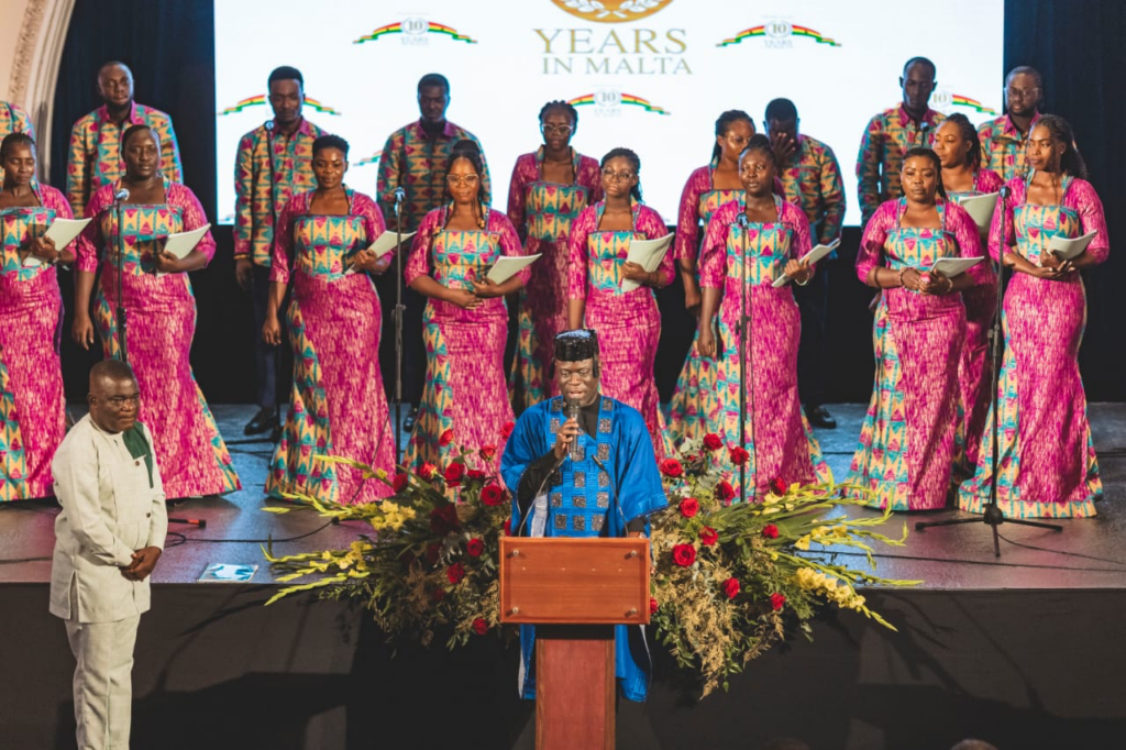The 10th-anniversary celebration featured a night of choral music by the Winneba Youth Choir, led by Mr. John Francis Arthur-Yamoah, with several high points, including a moving rendition of the Maltese national anthem that drew an emotional response from President Debono.