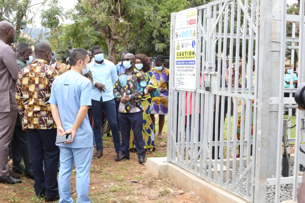 The Minister also inspected works on the government of Ghana Funded Ghana Rural Telephony and Digital Inclusion Project, at Abrabra and Nkyonya, as part of her tour of GIFEC project sites within the Sefwi Wiawso Municipality of the Western North Region.