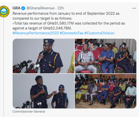 In a tweet, the Ghana Revenue Authority (GRA) said domestic revenue grew by 28.6%.