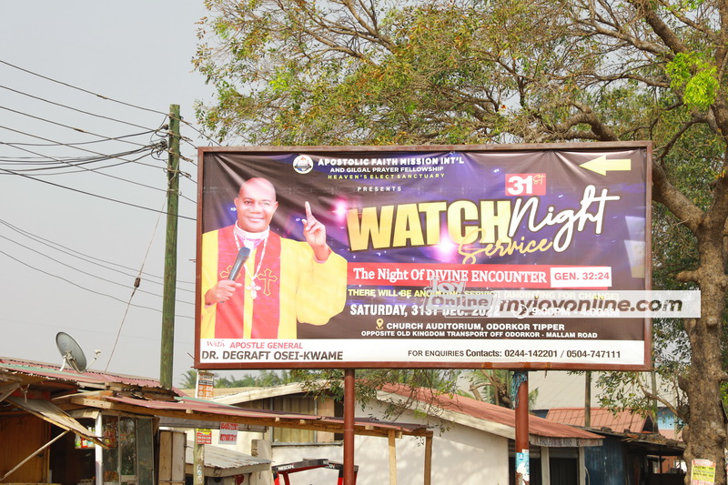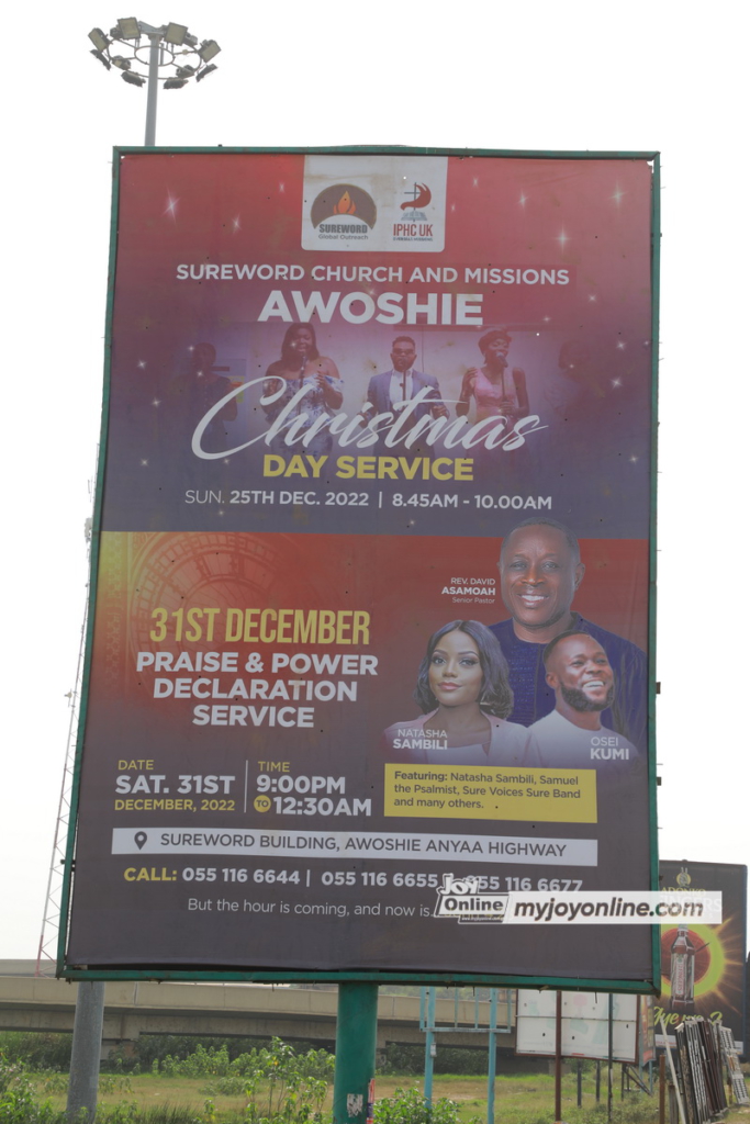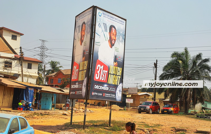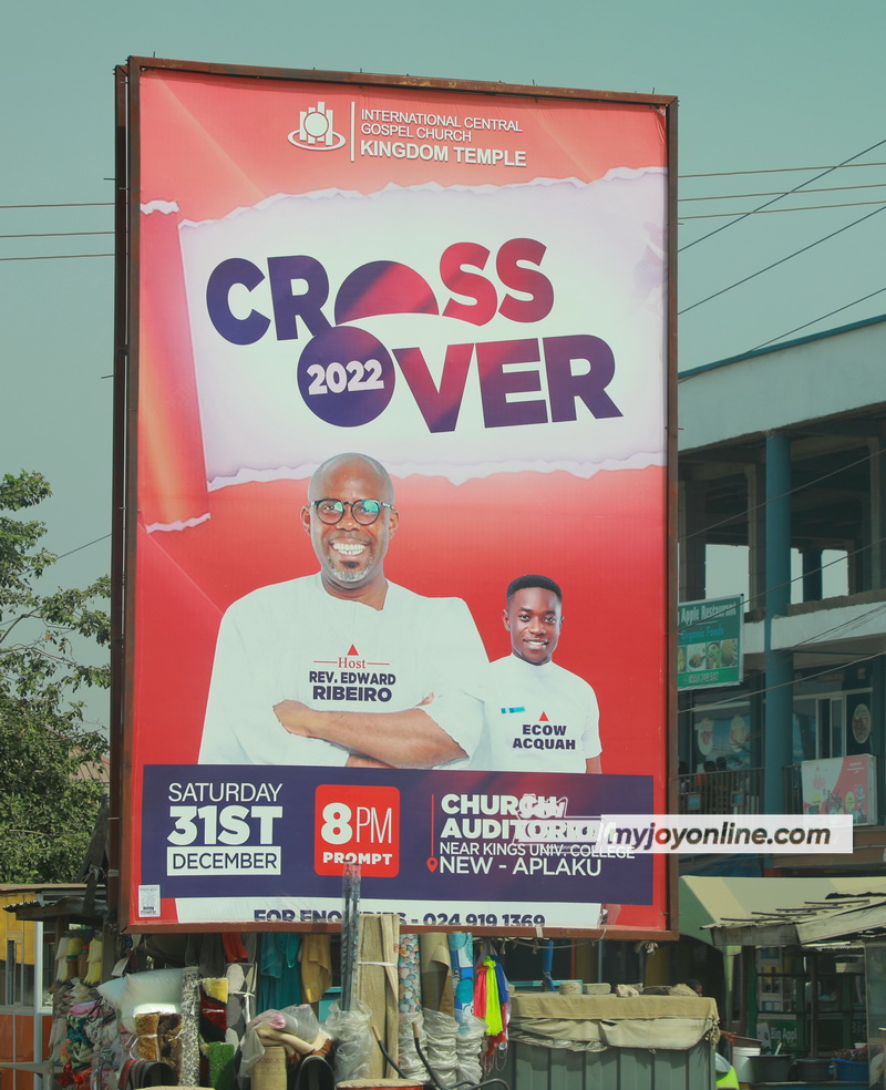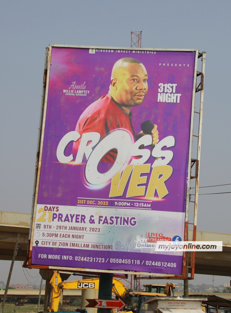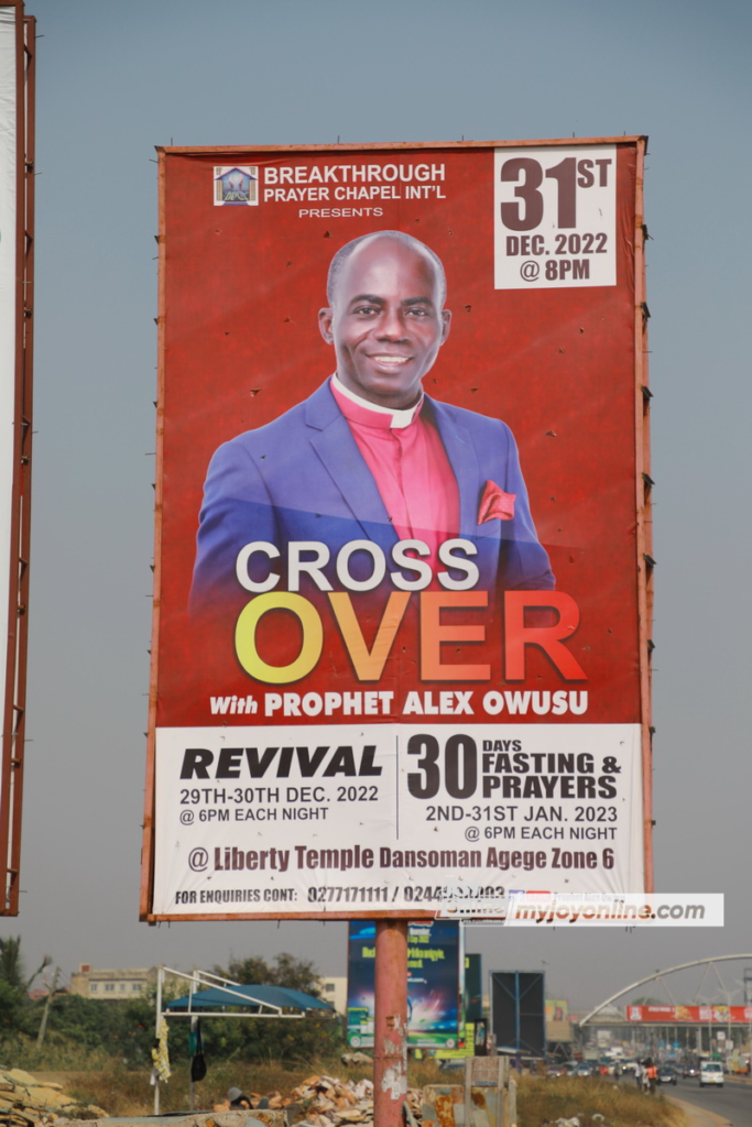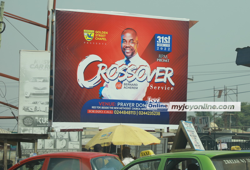 On such occasions, the mega churches spend huge sums of money to mount giant billboards on highways and busy intersections across the cities to advertise their cross over services.