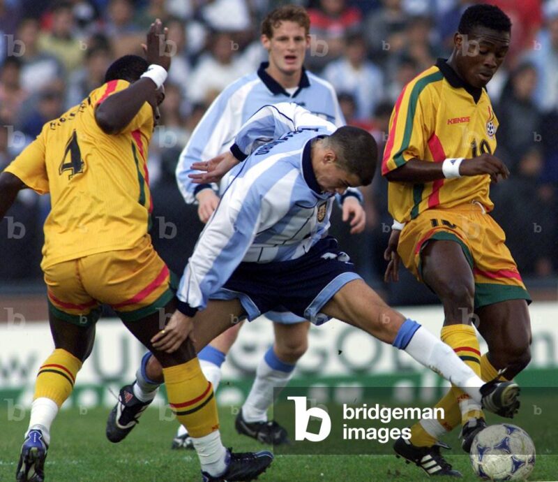 U20 WORLD FINAL, 2001-07-08 (photo); (add.info.: Argentina's Andres D'Alessandro (C) is challenged by Ghana's Michael Essien (L) and Derek Boateng in the final of the FIFA World Youth Championship, in Velez Sarsfield stadium on July 8, 2001.