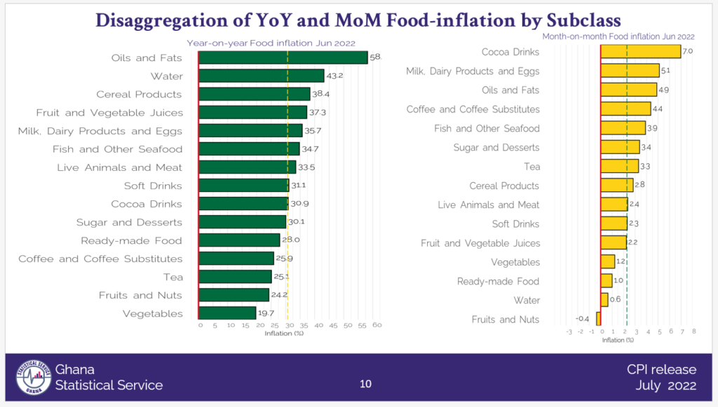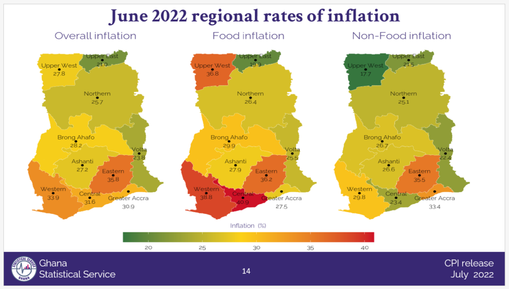 Year-on-year inflation shot up further by 2.2% to 29.8% in June 2022, latest data from the Ghana Statistical Service (GSS) has revealed.