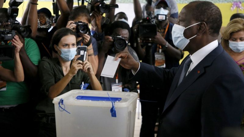 Opposition figures say it was illegal for Mr Ouattara to stand for a third term as it broke rules on term limits.