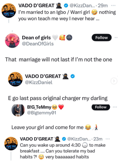 Kizz Daniel informed his followers about his marriage after a social media user attempted to engage in a banter with the singer.