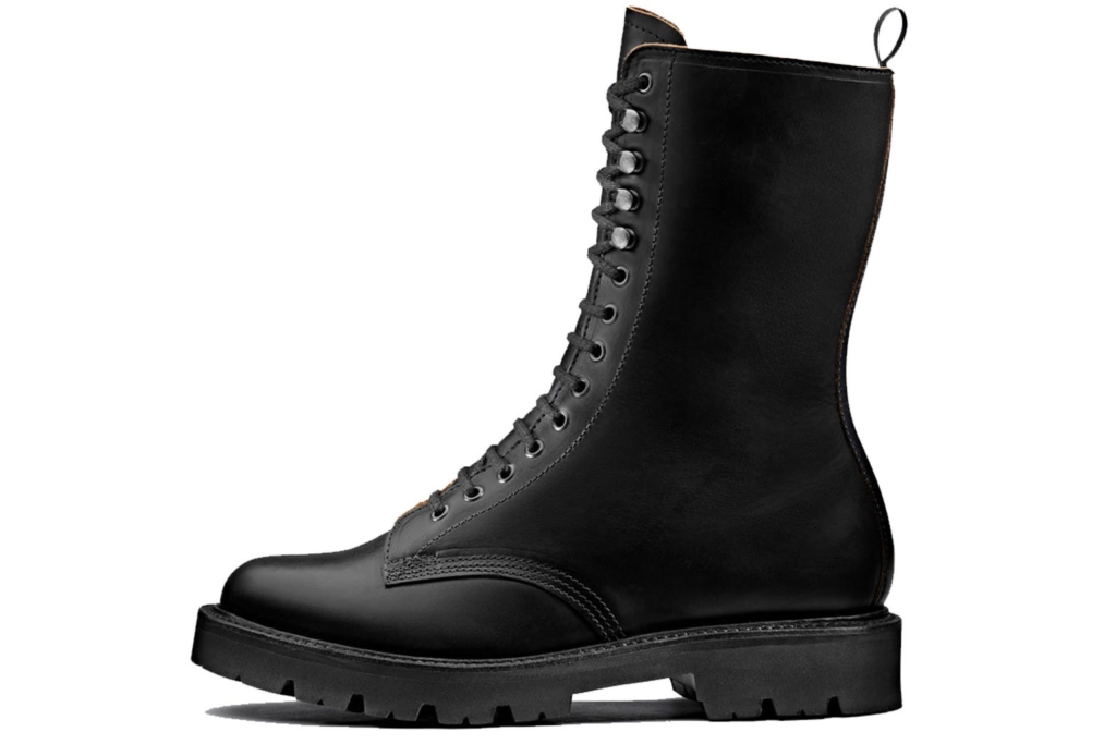 The men's take is just as appealing a tall Derby boot with 14 eyelets. Don't be fooled by its bulk, it's incredibly lightweight and made from a waxy Black Chromexcel from Horween, a renowned Chicagoan tannery.