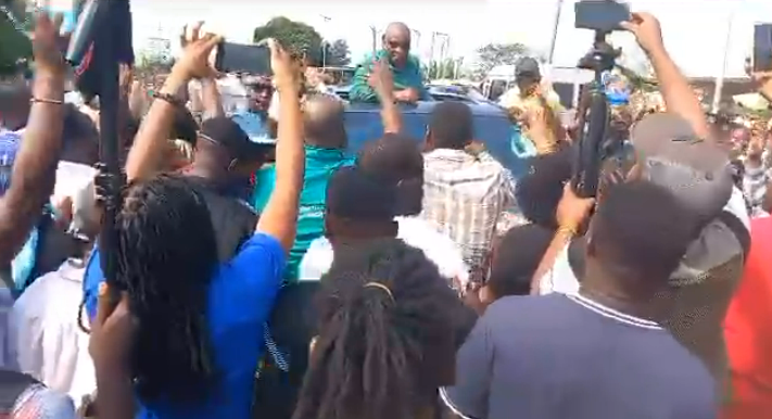 Upon entering Sogakpe on Thursday, the flagbearer was mobbed by party supporters.