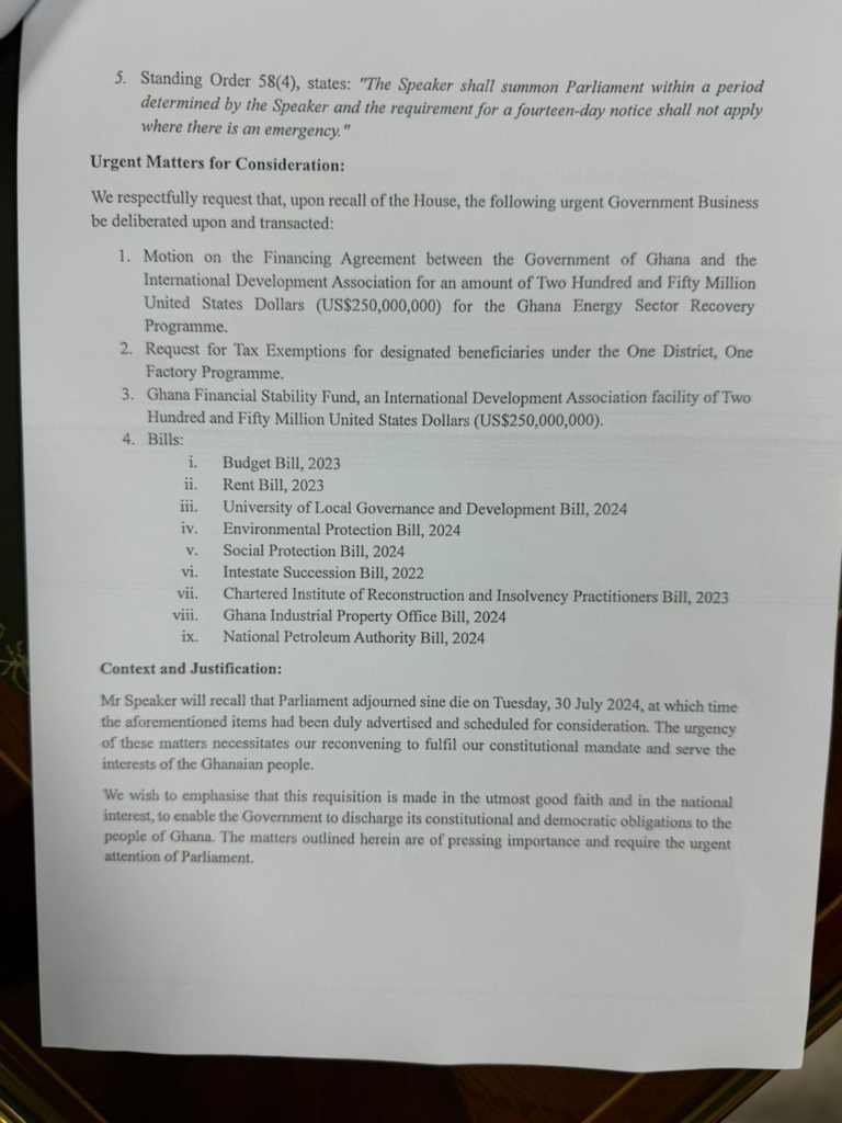 Afenyo-Markin emphasized the urgency of these matters, stating that "reconvening Parliament is necessary to fulfill their constitutional mandate and serve the interests of the Ghanaian people."