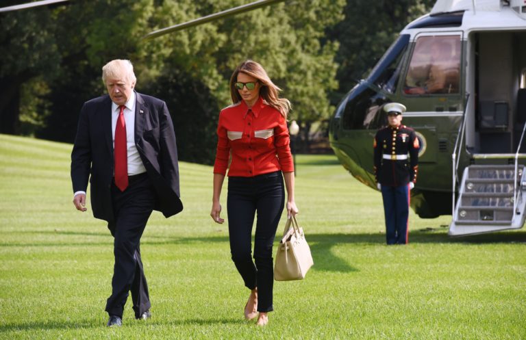 The former U.S. First Lady Melania Trump flaunted her black crocodile bag from her Birkin collection as she departed The White House.
