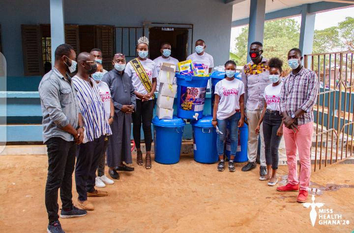 The 2020 Queen of Miss Health Ghana, Priscilla Serwaa Manu, has donated Personal Protective Equipment (PPE) to the St. Monica’s Primary School and Mensah Saahene International School in the Mampong Municipality of the Ashanti Region.