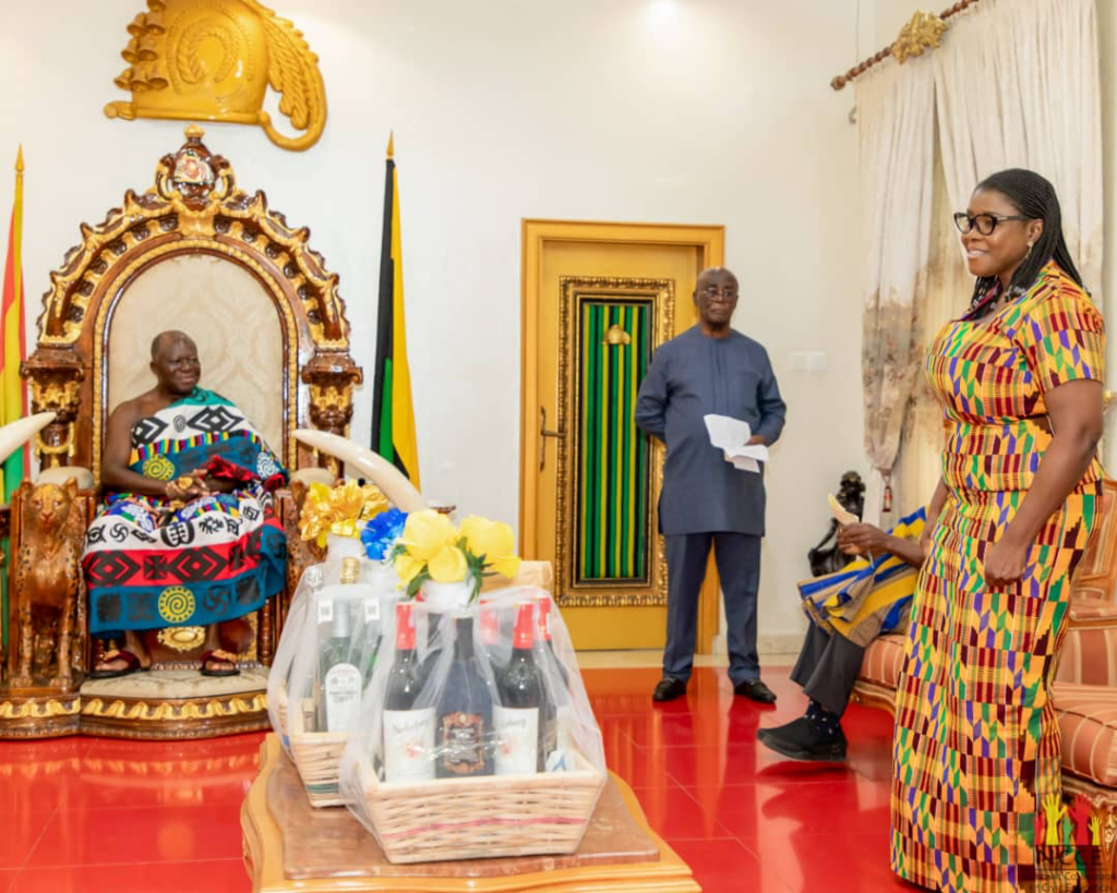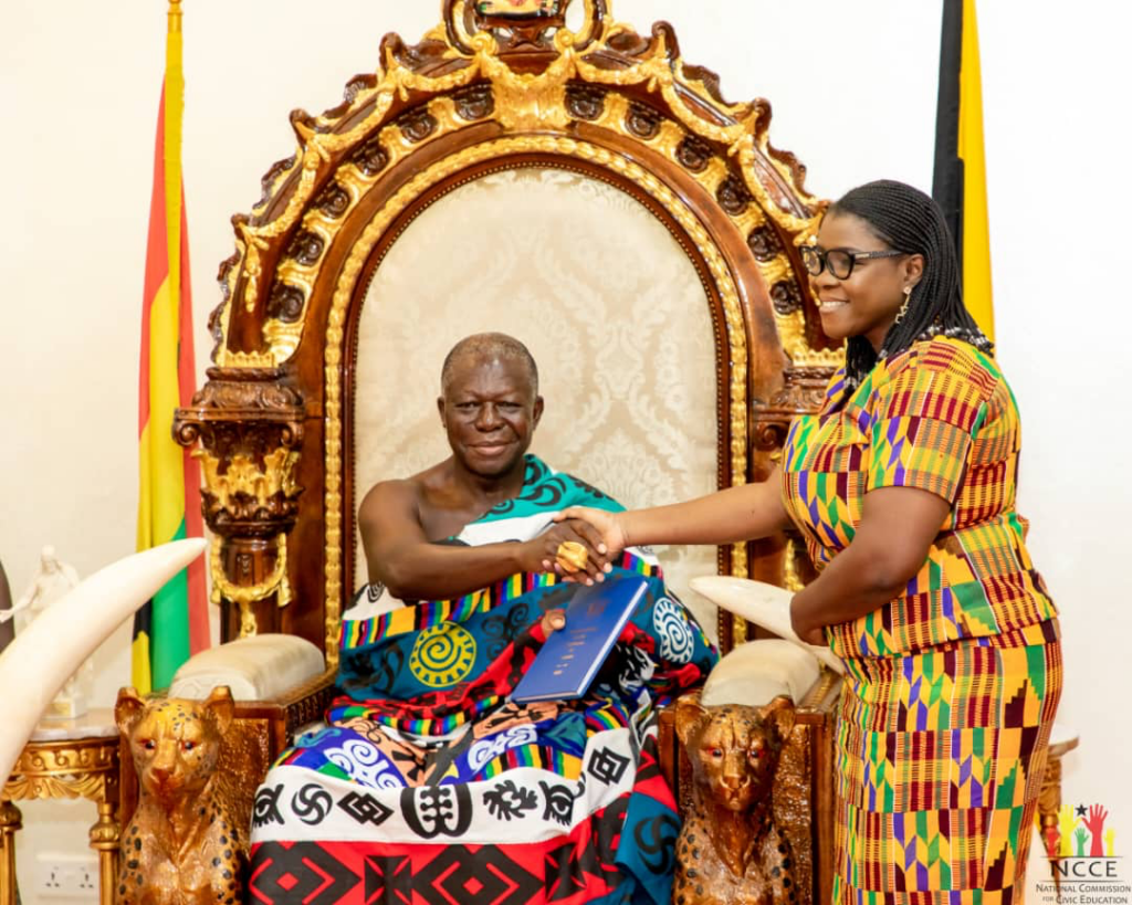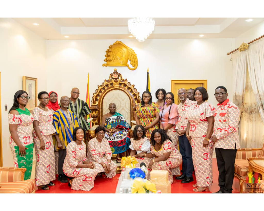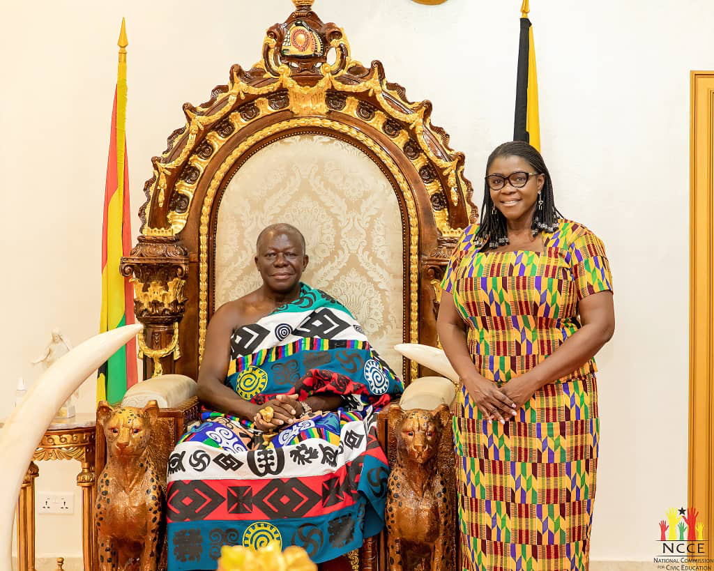 The Chairperson of the National Commission for Civic Education, Kathleen Addy has paid a courtesy on Otumfuo Osei Tutu II at Manhyia, Kumasi in the Ashanti Region.