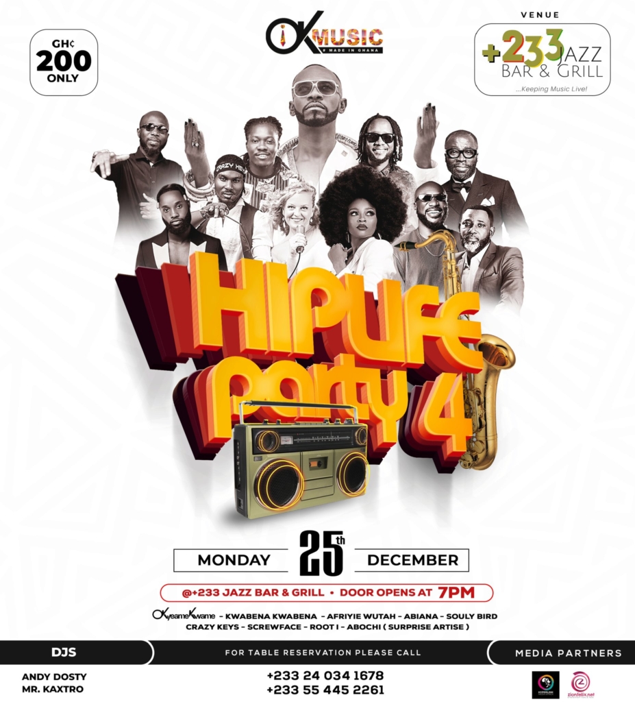 The party slated for December 25, 2023 will be held at the +233 Jazz Bar and Grill in Accra.