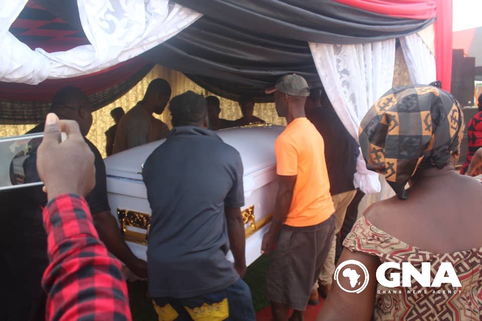 The late veteran actor, Psalm Adjeteyfio, has been laid to rest after a solemn funeral ceremony at the forecourt of the Trade Fair, La on Saturday, June 4, 2022.