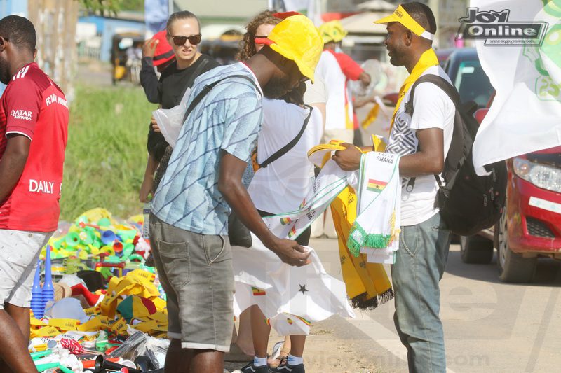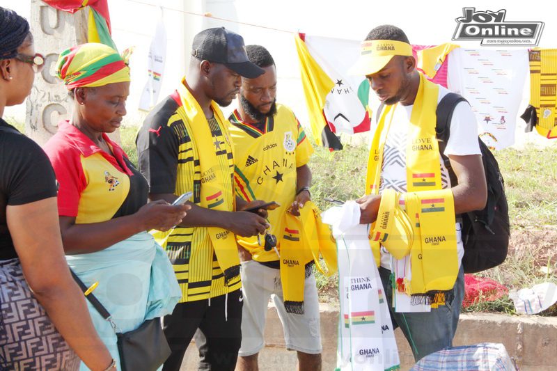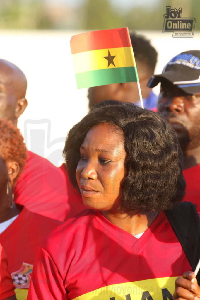 Scores of sports fans are currently trooping to the Cape Coast Sports Stadium in the Central Region to watch the crucial match between the senior national team, the Black Stars and their South African counterparts, Bafana Bafana.