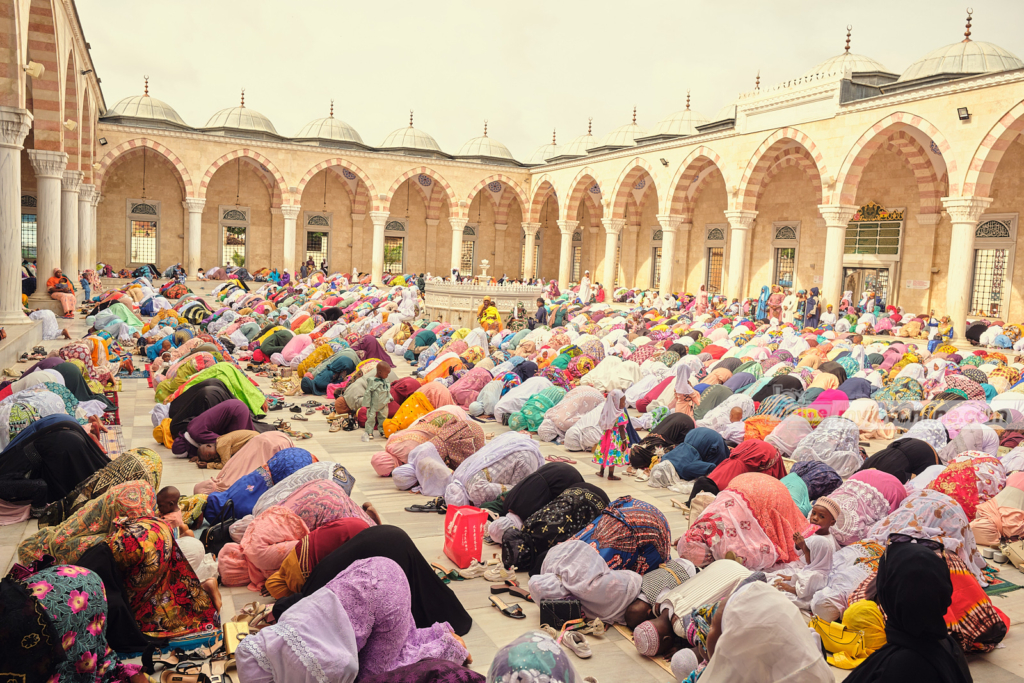 Dressed in bright colors, Muslim women showcased their fashion sense and vibrant color combinations, creating a captivating sight. The men also displayed their style in kaftans paired with intricately designed taqiyahs.