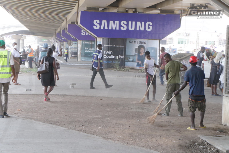 The operation, which started at the O&A Transport terminal, ended at the western end of the interchange with squatters, who have generated refuse being forced to sweep the place.