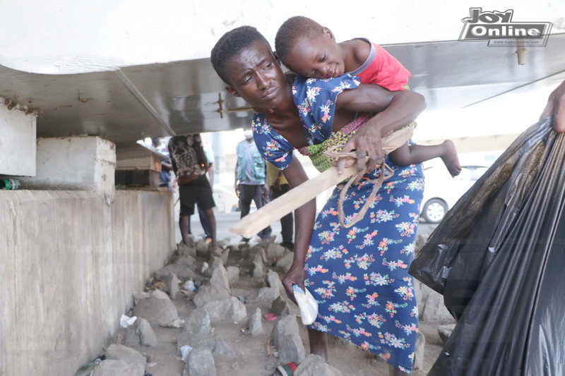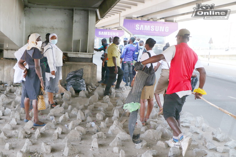 The Accra Metropolitan Environmental Health officers on Wednesday sacked squatters at the Kwame Nkrumah Interchange in Accra after making them clean the place.