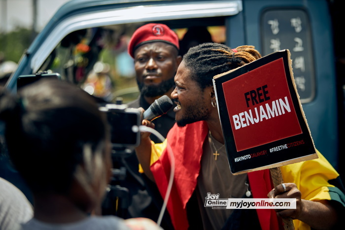 The protest aimed to demand the release of 53 anti-galamsey protesters, primarily members of the Democracy Hub group, who were arrested during demonstrations held from September 21 to 23.