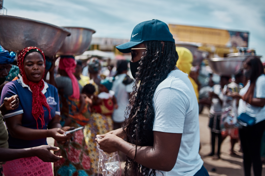 Actress and broadcaster Naa Ashorkor Mensah-Doku assisted Pistis GH in carrying out the donation. She encouraged all the market folks to endeavor to stick to the Covid-19 safety protocols.