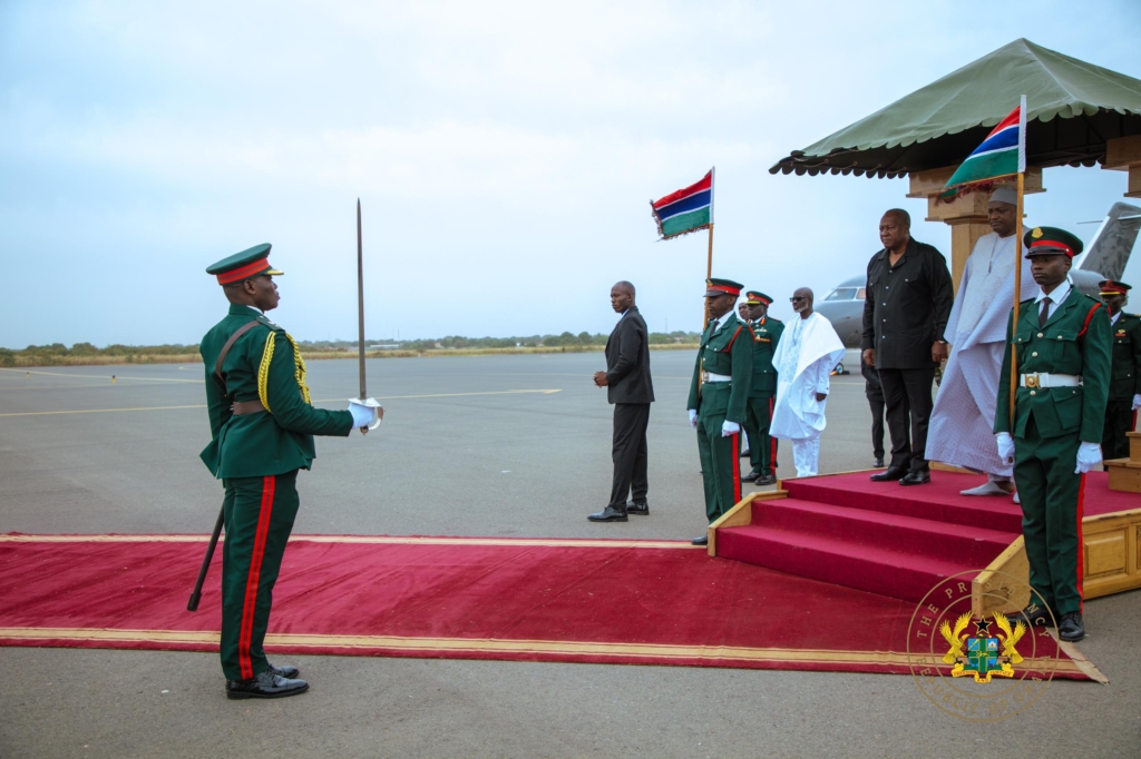 President John Dramani Mahama has arrived in Banjul, The Gambia, as part of a two-country visit to both The Gambia and Senegal.