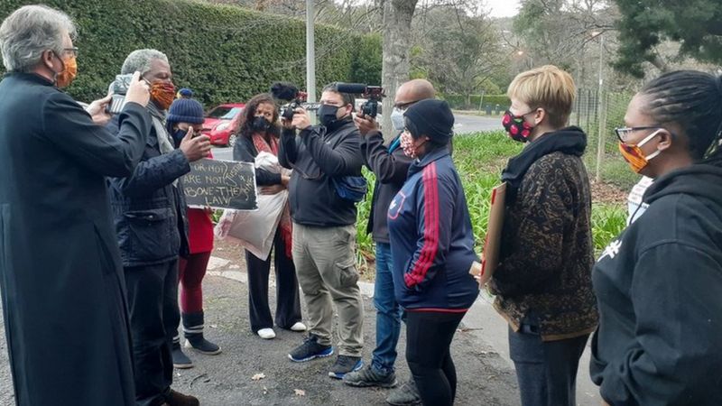 The women were protesting against what they said was inadequate action from the church over allegations of sexual misconduct by priests in the Anglican church of Southern Africa, including one who Rev Major says raped her.