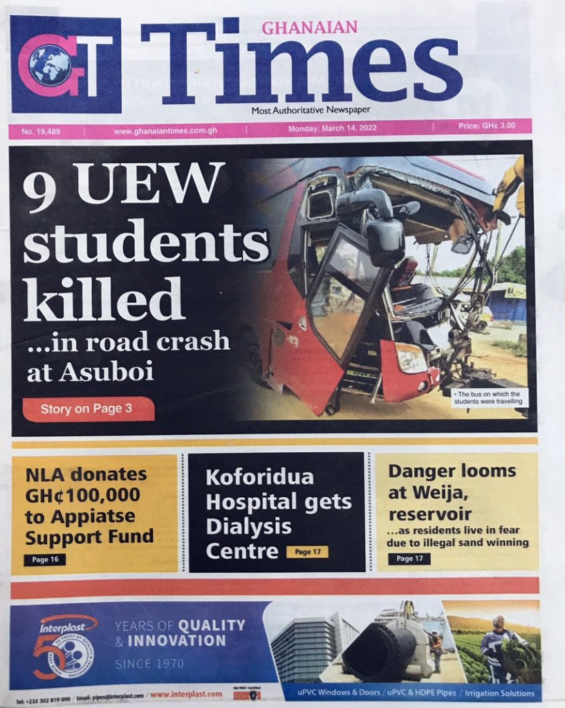 - 9 UEW students killed in road crash at Asuboi