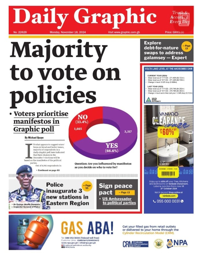 Myjoyonline.com brings you the front pages of the various newspapers across the country.