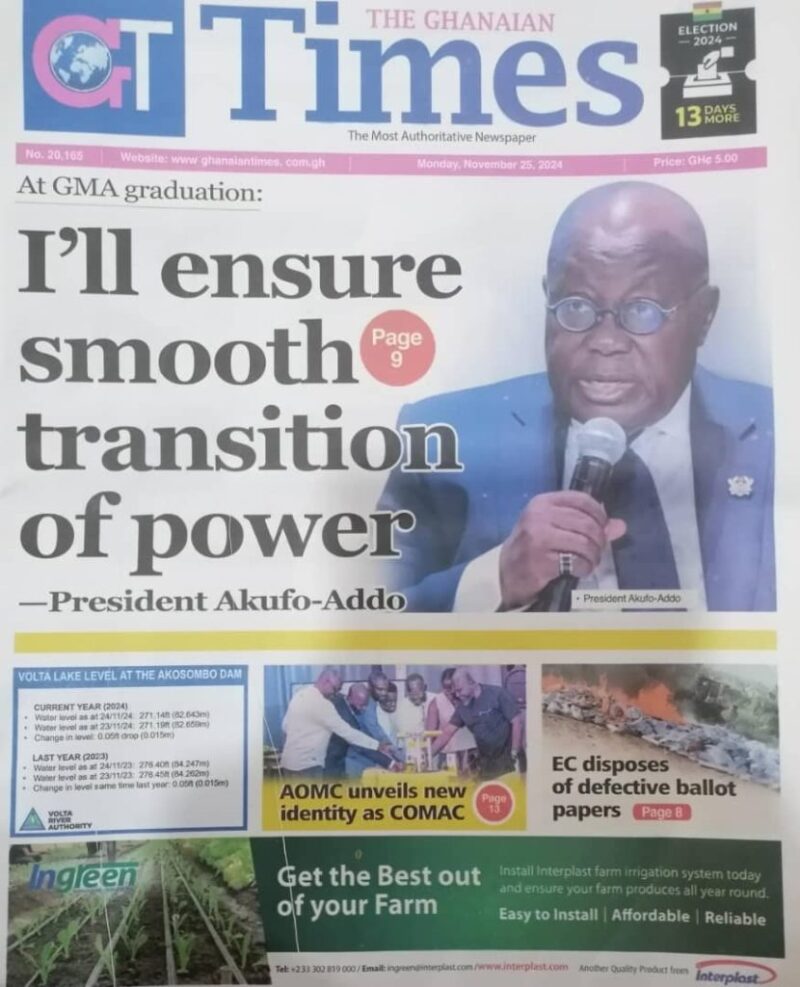 Myjoyonline.com brings you the front pages of the various newspapers across the country.