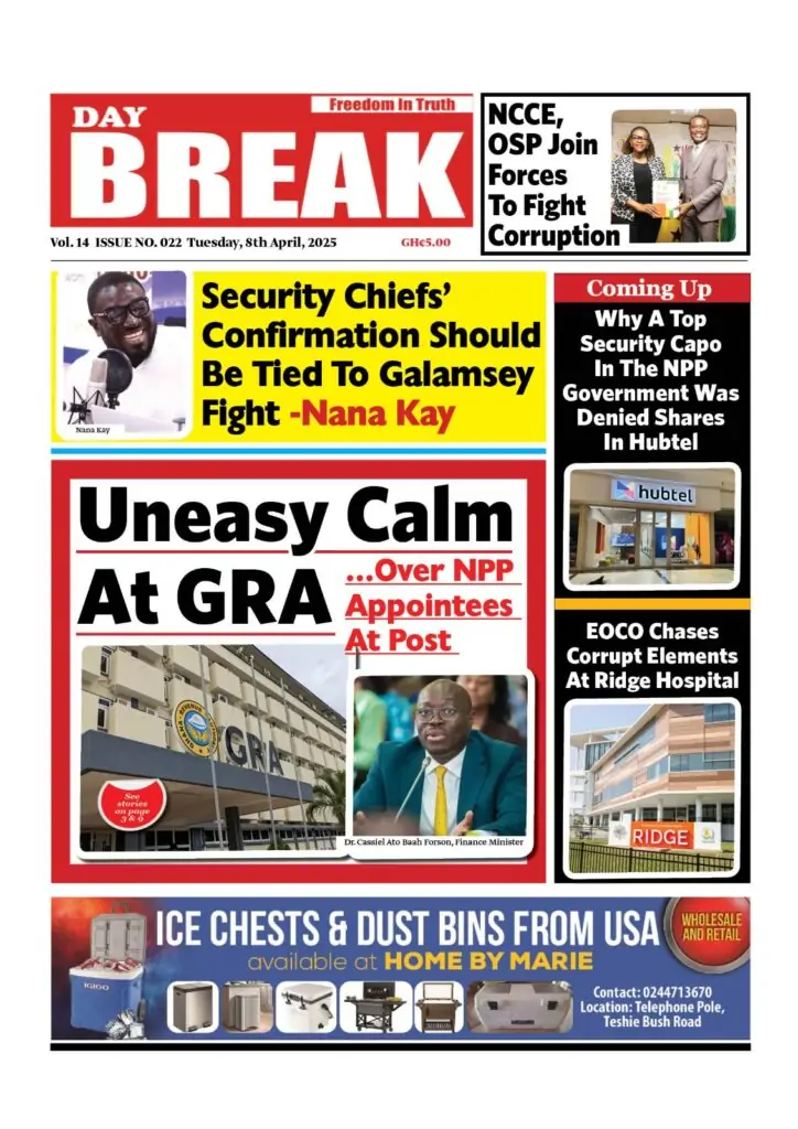 Myjoyonline.com brings you the front pages of the various newspapers across the country.
