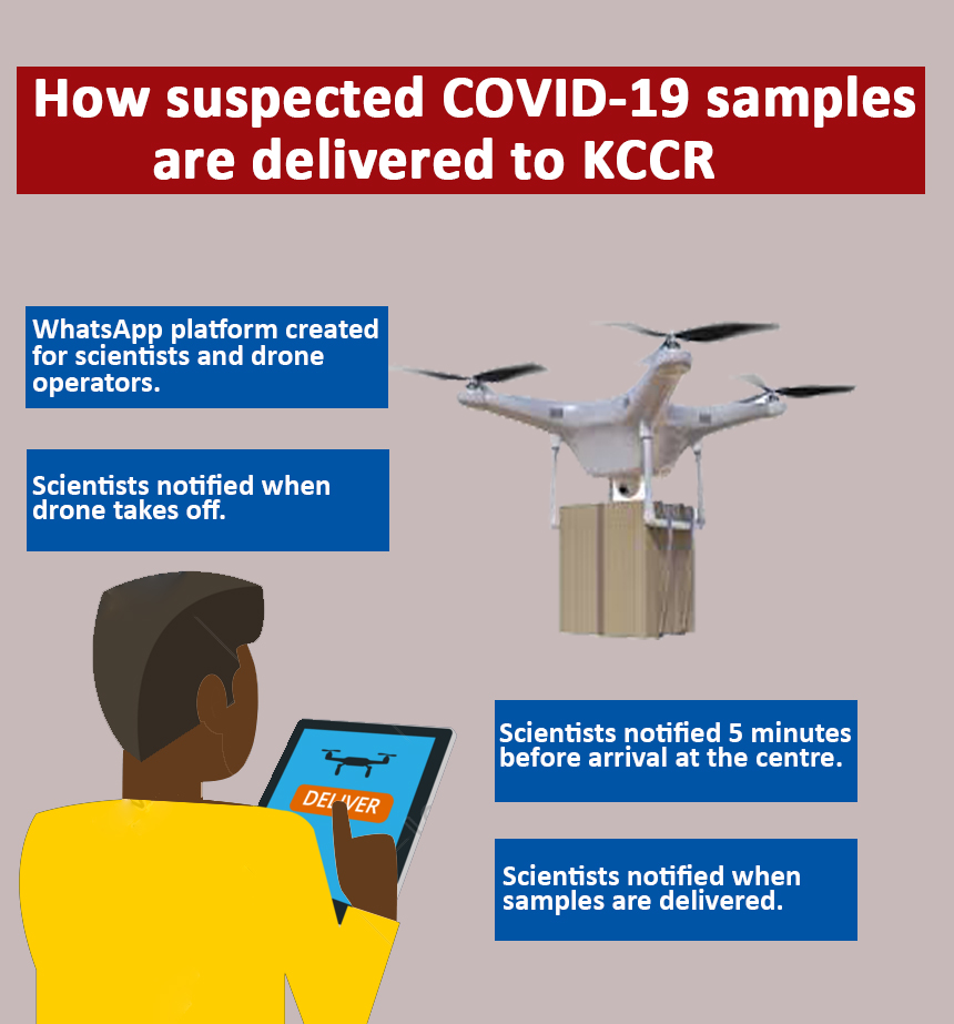 One of Ghana’s biggest testing centers, the Kumasi Centre for Collaborative Research (KCCR) has been receiving suspected samples through drones, making the country the first to adopt this technology for this purpose.