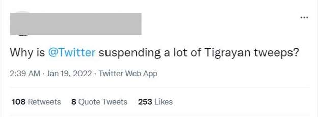 Although Twitter did not give an exact figure, pro-Tigrayan users estimated the affected accounts could number in the hundreds.