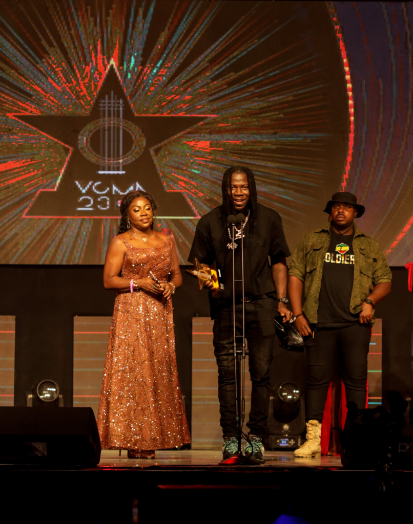Presenting the award at the VGMAs, the Chief Executive Officer (CEO) of Vodafone Ghana, Patricia Obo-Nai encouraged musicians to begin using their craft to promote inclusion for all, a digital society, and the protection of our environment.