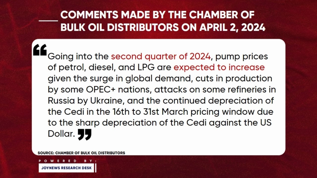 This dependency, combined with the recent depreciation of the cedi by 6.8 per cent against the US dollar from January to March, has led to increased costs for importing petroleum products.